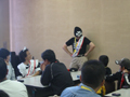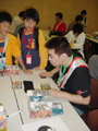 今回は小学生の子供達が、更に楽しんでくれるようにと、“刺客とデュエルで勝負して、3回勝って、クイズに正解したら、拡張パック・ホイルカードをプレゼント!”という、何度でも挑戦可能なサイドイベントを実施しました。