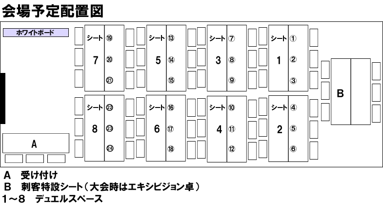 ★趣旨説明 今回、激熱バトルの部のメインイベントとして、通常レギュレーション・おやぢ電動レギュレーションの 2つの大会を開催致します。 その運営にあたり、私ども委員の考える基本理念は以下の通りです。 1)誰かがジャッジに専念するような形=大会に参加できない人がいる という形にしない ※やはり参加者全員が楽しめるイベントにしたいというコンセプトから、できるだけ全員が プレーヤーとして参加して欲しいと考えております。 2)時間は押せないので、効率良く大会を運営する ※今回企画は、参加者様が楽しんでいただけるように、メインイベント・サイドイベントと欲張りなくらいの 内容を織り込みました。 結果、タイムスケジュールが詰め詰めとなっていますが、メインイベントの大会を、効率良く運営し、 参加の皆様が同じ方向を向くことで、通常の専属のジャッジを置いた場合とあまり変わらないくらいの スムーズな運営が可能ではないだろうかと考えております。 3)できる限り参加者皆様が納得できる公平さを保てる運営 ※今回、フリーの大会とは言え、景品もかなり豪華なものとしていますので、できる限り、参加者皆様が 納得できるような公平性を保てるような形で運営していきたいと考えております。 これらを前提に、以下を大会運営指針として設定しました。 参加者の皆様も事前に内容をご確認頂き、運営ご協力の程、どうぞよろしくお願い致します。 ★対象イベント ・通常レギュレーション トーナメント大会 10:30〜12:30 ・おやぢ電動レギュレーション スイスドロー大会 14:00〜16:00 レギュレーションはコチラ (いずれも1デッキ制の1本勝負です) ★制限時間(トーナメント・スイスドロー共通) 1試合10分 ただし、プレイヤーでもある、主審ジャッジ・進行仕切の対戦する、「エキシビジョン卓」での試合のみ 制限時間無し スムーズな大会運営を行うためには、制限時間は必須との考えでおります。 理由は明快。「オヤジはプレイングが遅い」からです(^_^;) 本当は、制限時間なしでトコトンやりたいのですが、オヤジvsオヤジの真剣勝負は1デュエル30分近くかかる 事とか結構ざらにあるじゃないですか? この「悪意無き自然遅延」こそが、大会のスムーズな進行の最も大きな障害となってしまっております。 (時間制限を設けない場合、当然、早く終わる対戦もあれば凄く時間がかかる対戦もあります。 その遅い何組かの結果が出るまで大会が動けない…としてしまうと、待ち時間中に各所でフリー勃発し、 気が付いたら、あちこちでフリーが! そして、肝心の本戦が終わっていたにもかかわらず、どれがフリーで どれが本戦なのかわからなくなる等の著しい弊害発生が容易に想像できてしまいます。) 以上の理由により、1試合10分という時間制限を設けさせて頂くものです。 ★主審ジャッジ・進行仕切 および、エキシビジョン卓について(トーナメント・スイスドロー共通) 通常は、1試合10分の時間制限を設けます。 ただし、例外事項として、主審ジャッジと進行仕切(兼プレイヤー)が対戦する「エキシビジョン卓」での試合は 時間制限を設けません。 *当日の会場予定配置図はコチラ ・主審ジャッジと進行仕切と各対戦相手は、スイスドローなどによる通常の試合場所で試合をせず、試合会場の いちばん前に特設テーブルを設け、みんなに晒されながらそこで試合を行います。 ・試合中、ジャッジングの必要が出た場合、参加者はゲームを止め、「エキシビジョン卓」の主審ジャッジを呼びます。 主審ジャッジは自対戦を一時停止して、当該ジャッジングを行います。 また、このジャッジングに関しては「すべて」主審ジャッジが判断・指示を行いますので参加者は必ずそれに 従って下さい。 ・万一、ジャッジングが必要な場面で、対戦者が隣の参加者やギャラリーに聞いてゲームを進行させた場合、 ルールが間違えて解釈され、結果ゲームの勝敗が違っていたとしても、巻き戻しは行いません。 ・主審ジャッジが対戦する「エキシビジョン卓」での試合は、ジャッジングによる試合中断等の不利益が あるため、時間制限を設けません。 仮に、ジャッジングする事が1度も無い対戦でも制限時間は設けません。 ・また残り時間を確認し、途中経過・終了アナウンス他、全体の状況を常にチェックする、進行仕切も 自プレイよりも全体を優先する必要があることから、時間制限を設けません。 ★スコアシートの配布・対戦結果記入(スイスドロー) 大会前に、スコアシートを各自に配布致します。 対戦終了後、対戦者はその結果を記載し、双方で確認をとります。 ★得点(スイスドロー) 勝ち3点、負け0点、引き分け1点で計算します。 ★得点箱の設置と勝敗チェック(スイスドロー) 勝ち負けの区別をできるだけスムーズに行うため、「スイスドロー」の合計得点別の箱を用意します。 勝敗チェックは、運営スタッフ、主審ジャッジがそれぞれのゲームが終わり次第行います。 流れとしては、