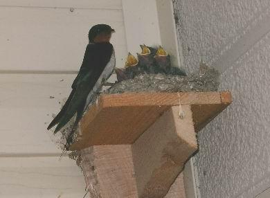 翌朝、どこで眠ったのか朝帰りの子供達と親燕が我が家の周りで遊んでいます。