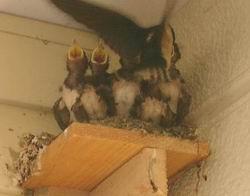 それからも何度も(開けっ放しなので)両親の部屋や玄関にやってくる燕、そこで父が軒下に