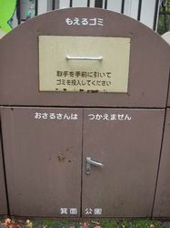 ゴミ箱には「おさるさんはつかえません」とある。