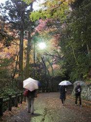 時折は傘傾けて冬紅葉