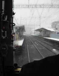 通過駅のホームや駅舎が白くなっていたり。