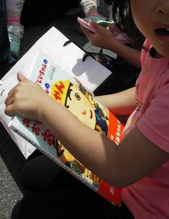 次々と小さい人たちのリクエストに応じて絵本を読み、