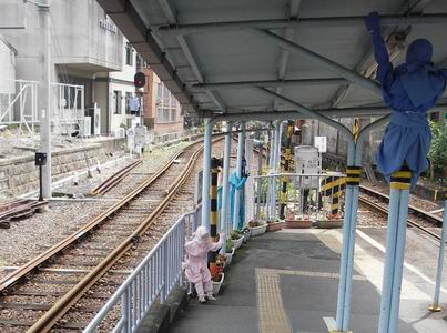 上野市駅では忍者たちのお出迎えを受け、(町のそこかしこに潜んでいる。)