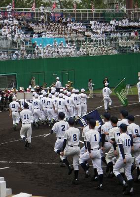 昨年は開会式直後の第一試合だったので一番最後の入場だったが今年は