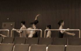 小さな白鳥大きな白鳥、皆雪のような衣装をつけ練習。