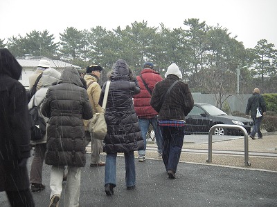 当日、我が家のあたりは朝から雪催で、とにかく暖かな服装をと