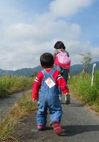 虫を集めている。一緒に歩く大きな人は「逃がしてあげようよ」と