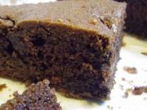おいてある娘のチョコレートケーキを指をチョコレートで汚しながら