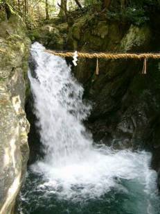 雨模様の天気の後のせいか、足元の悪い小道をすすみ、東の滝の前の小さな太鼓橋を渡った先に