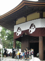 俳聖殿の今日は開かれた扉の前でどんどんどんとプログラムは進行。