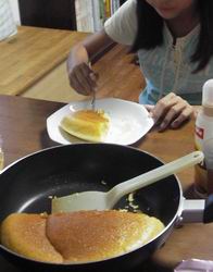 珍しく皆のいる休みは大きなホットケーキを焼こうか、