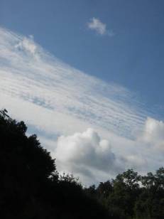 川沿いの道を運転中、正面の雲が淡く光っていたので、
