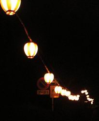 上野市役所は上野城のすぐそばで、提灯の連なる道を
