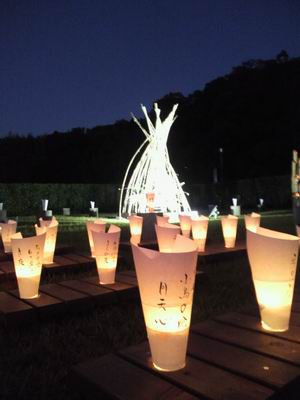 「祈りの灯り」と名の付いた無数の行灯に火が。
