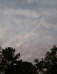 黄昏、金色の飛行機雲が一筋北の空に見えた。