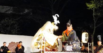 篝火がともされ、能舞台が浮かび上がる、開演だ。