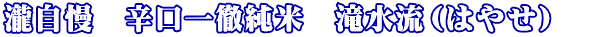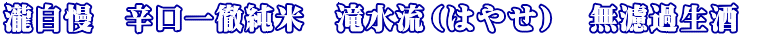 | 瀧自慢 辛口一徹 滝水流(はやせ)の火入れする前の無濾過生!! 限定品!! | |||||||||||