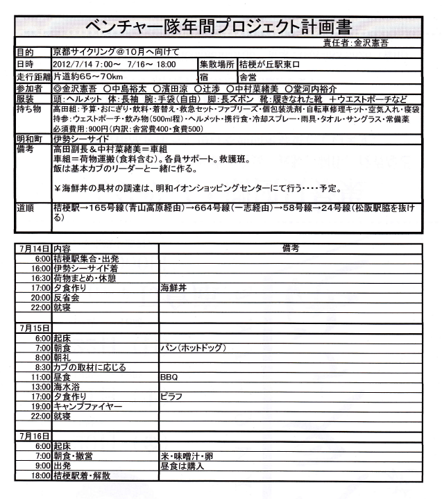 名張第3団 年間予定