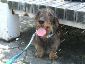 大きくてかっこいいワイヤーのジョイ君と初対面♪ 実は未来以外のワイヤーと会うのはこれが初めて・・ ジョイ君に触るとワイヤーらしい剛毛にビックリ!感激しました〜。
