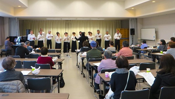 梅が丘市民センター(梅・南茶亭サロン)のミニ演奏会に出演、会場の皆さんと一緒に歌って交流しました。